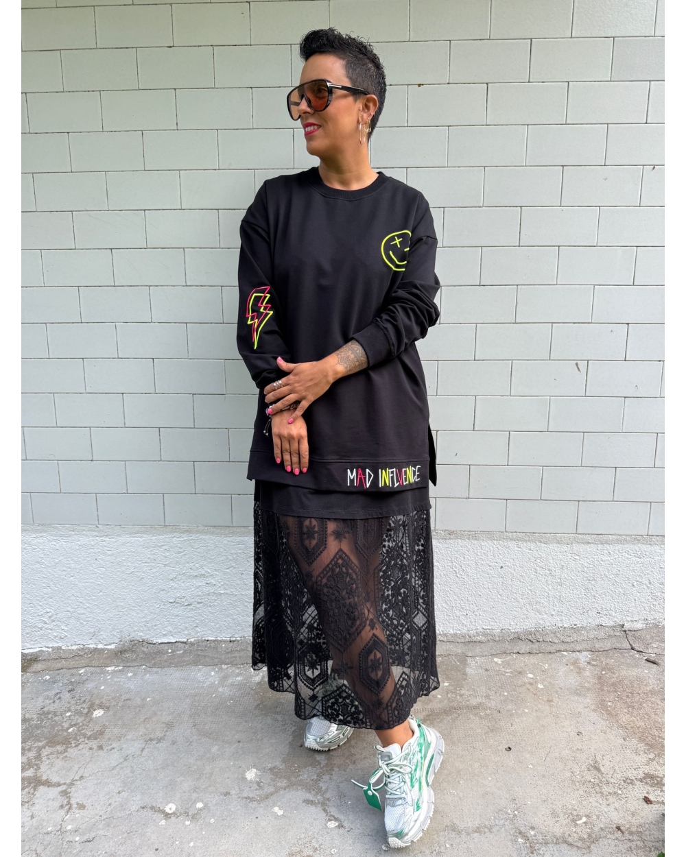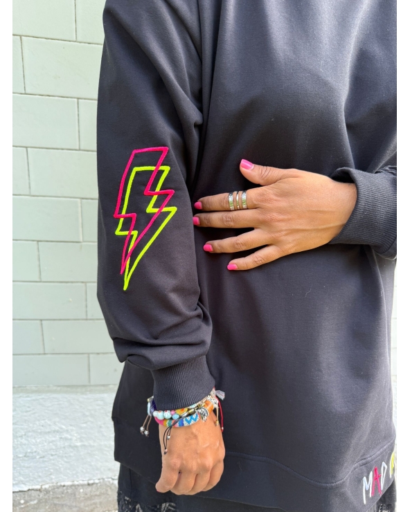 Sudadera larga, con aberturas laterales y detalles en bordado